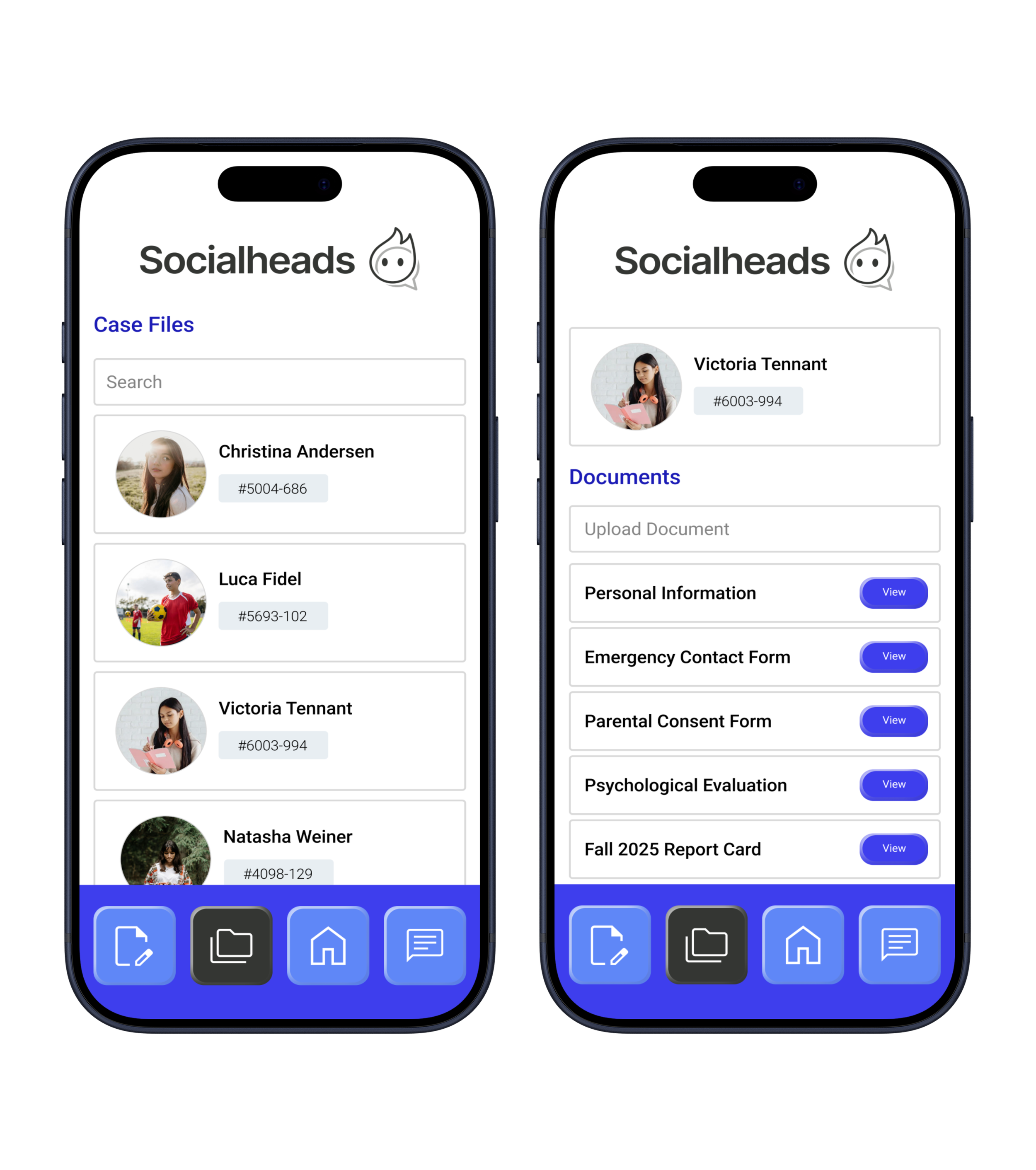 Design a secure messaging app that connects social workers with young people (ages 10-25) in need of care.