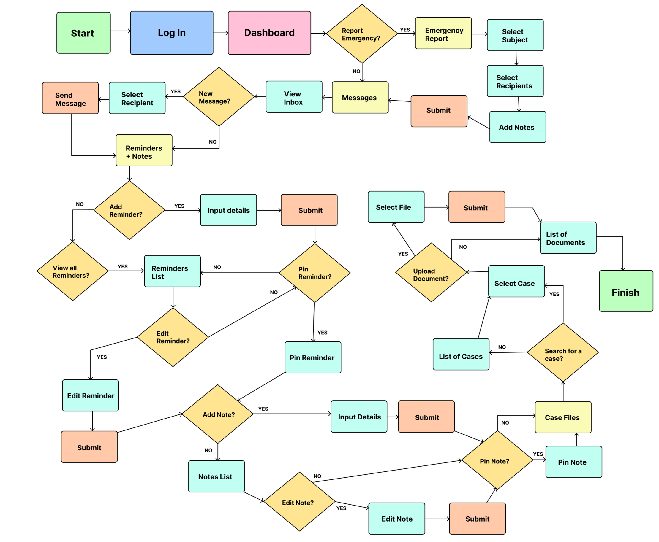 Following the site map, a user flow chart was created to demonstrate a hypothetical user’s journey through the app.